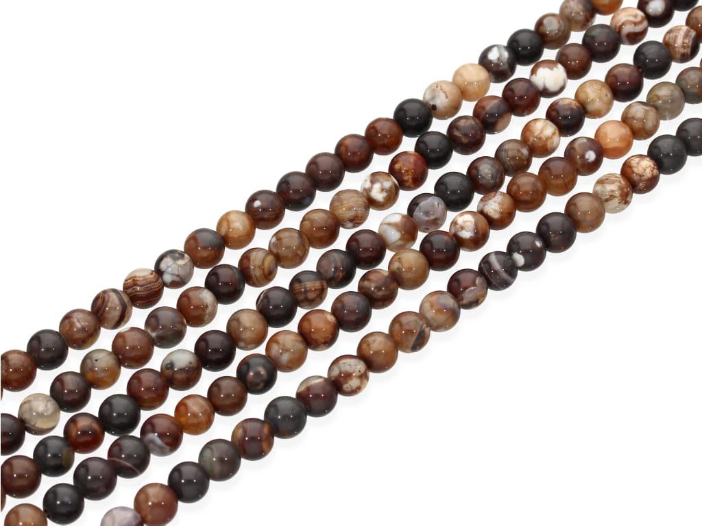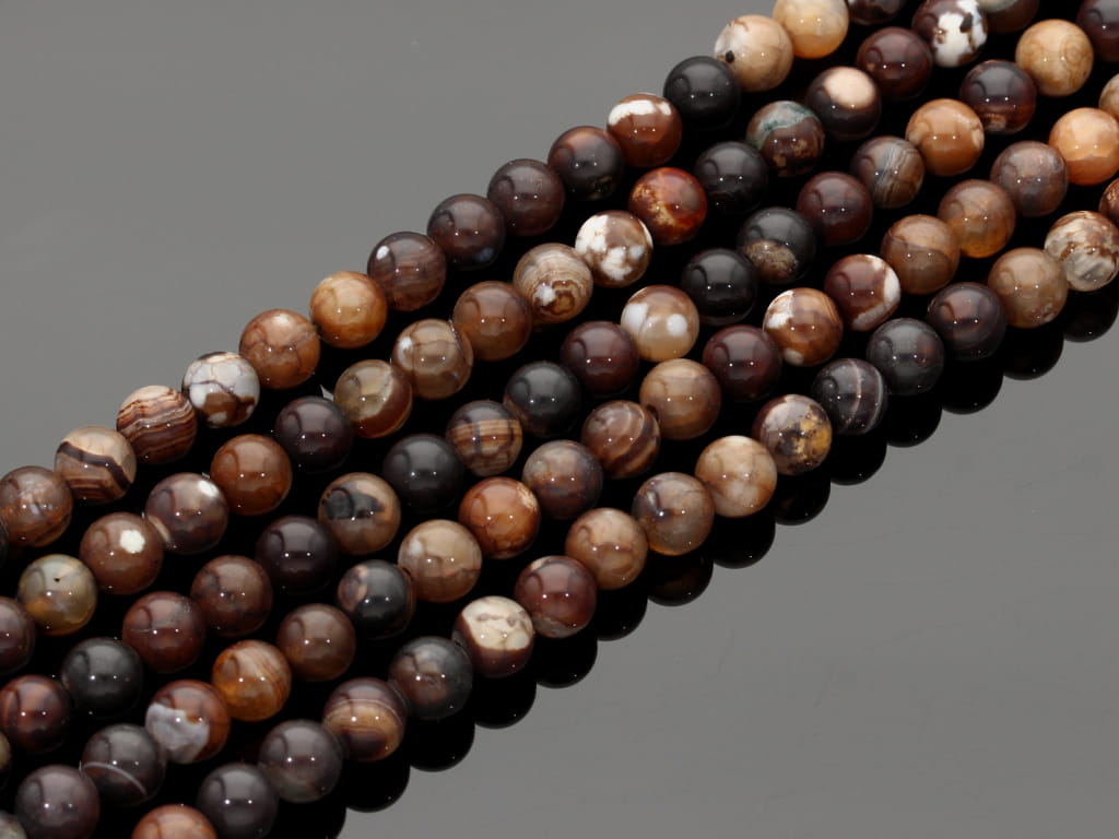 Agat (ceramiczny-nazwa handlowa) w kształcie kulki, sprzedawany w sznurach bez zapięcia, służących do samodzielnego tworzenia biżuterii. Cena dotyczy jednego sznura, który podczas kompletowania zamówienia jest wybierany losowo.