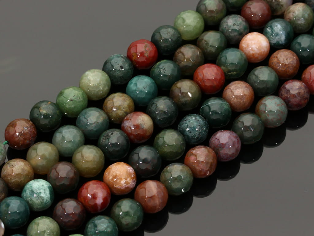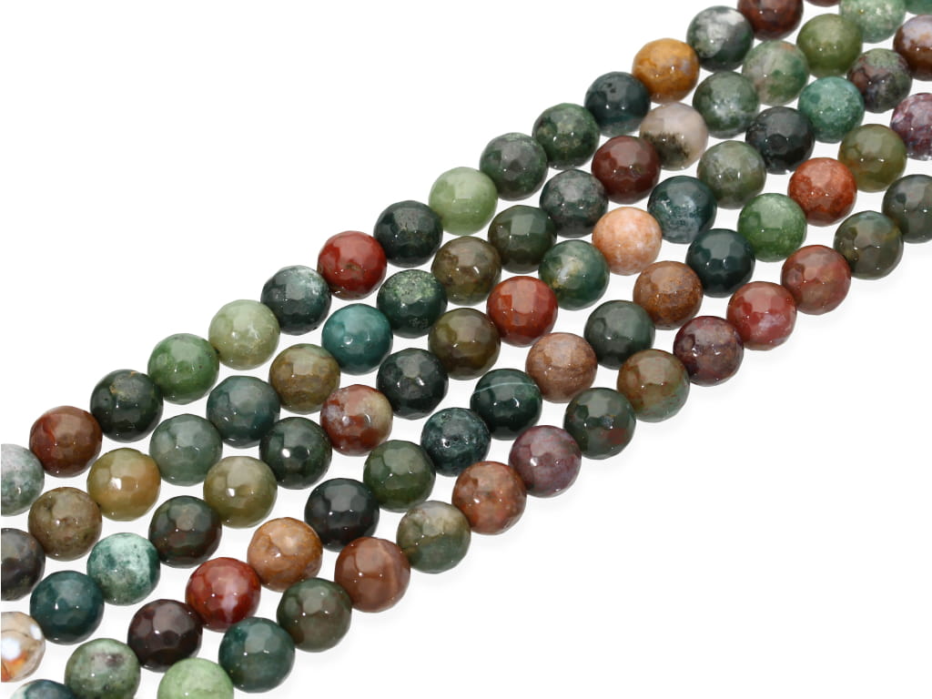 Agat indyjski w kształcie fasetowanej kulki, sprzedawany w sznurach bez zapięcia, służących do samodzielnego tworzenia biżuterii. Cena dotyczy jednego sznura, który podczas kompletowania zamówienia jest wybierany losowo.