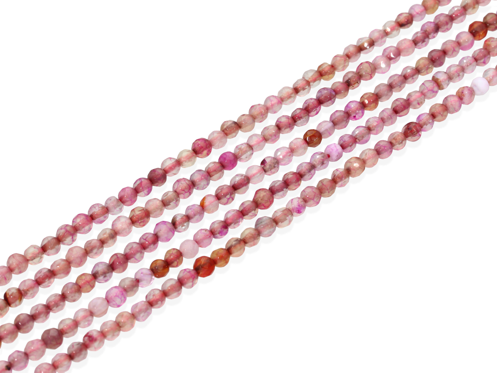 Agat w kształcie fasetowanej kulki, sprzedawany w sznurach bez zapięcia, służących do samodzielnego tworzenia biżuterii. Cena dotyczy jednego sznura, który podczas kompletowania zamówienia jest wybierany losowo.