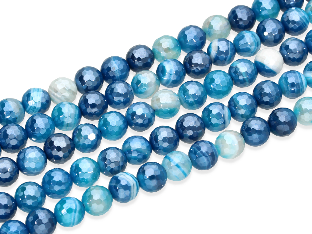 Agat w kształcie fasetowanej kulki, pokryty specjalną powłoką nadającą mu wyjątkowy blask. Agat jest sprzedawany w sznurach bez zapięcia, służących do samodzielnego tworzenia biżuterii. Cena dotyczy jednego sznura o długości ~ 19 cm, który podczas kompletowania zamówienia jest wybierany losowo.
