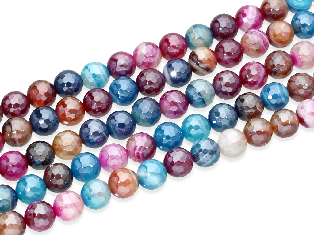 Agat w kształcie fasetowanej kulki, pokryty specjalną powłoką nadającą mu wyjątkowy blask. Agat jest sprzedawany w sznurach bez zapięcia, służących do samodzielnego tworzenia biżuterii. Cena dotyczy jednego sznura o długości ~ 19 cm, który podczas kompletowania zamówienia jest wybierany losowo.