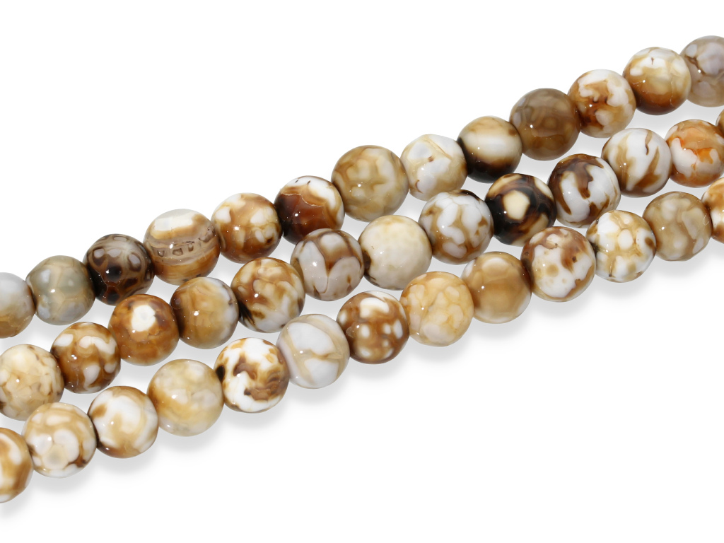 Agat w kształcie kulki, sprzedawany w sznurach bez zapięcia, służących do samodzielnego tworzenia biżuterii. Cena dotyczy jednego sznura, który podczas kompletowania zamówienia jest wybierany losowo.