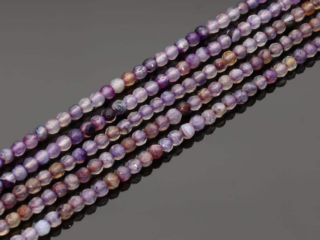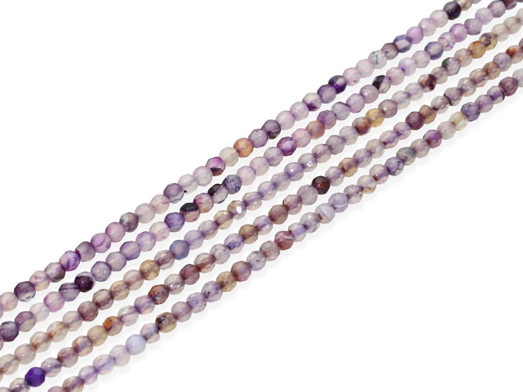 Agat w kształcie fasetowanej kulki, sprzedawany w sznurach bez zapięcia, służących do samodzielnego tworzenia biżuterii. Cena dotyczy jednego sznura, który podczas kompletowania zamówienia jest wybierany losowo.
