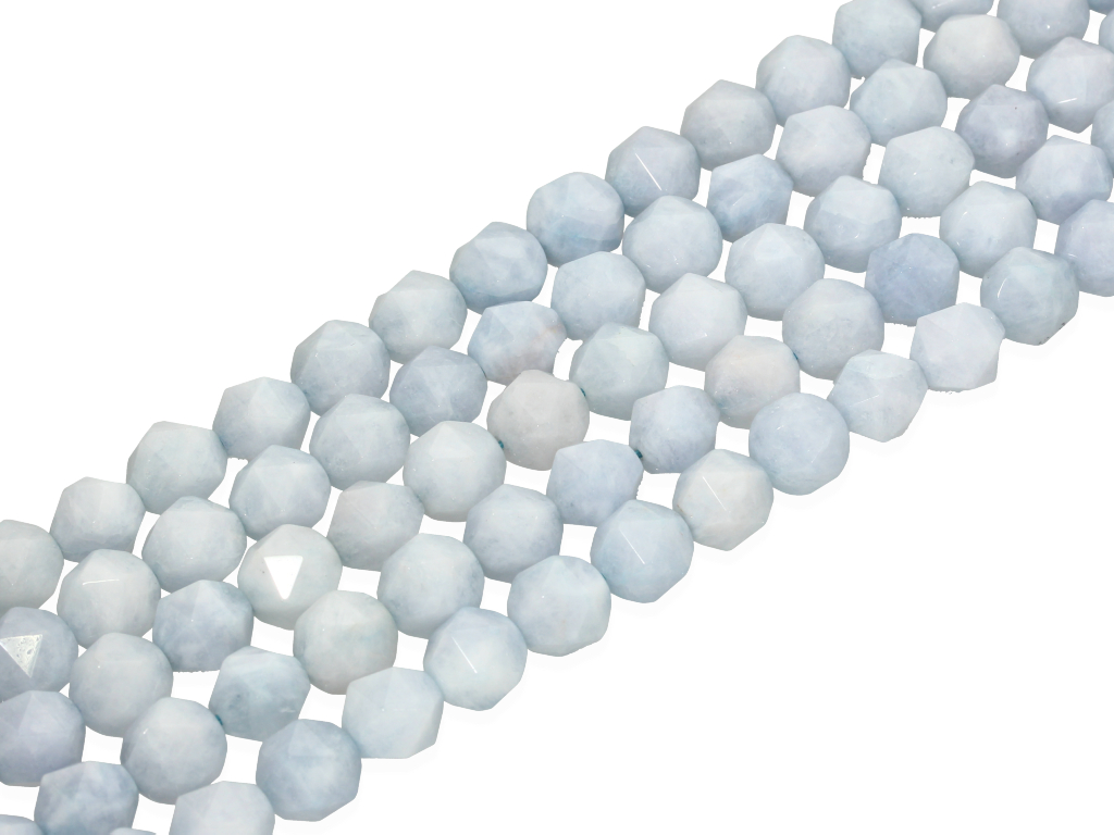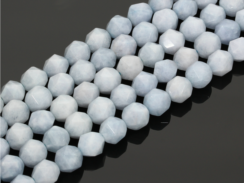 Akwamaryn w kształcie ciętej bryłki, sprzedawany w sznurach bez zapięcia, służących do samodzielnego tworzenia biżuterii. Cena dotyczy jednego sznura, który podczas kompletowania zamówienia jest wybierany losowo.