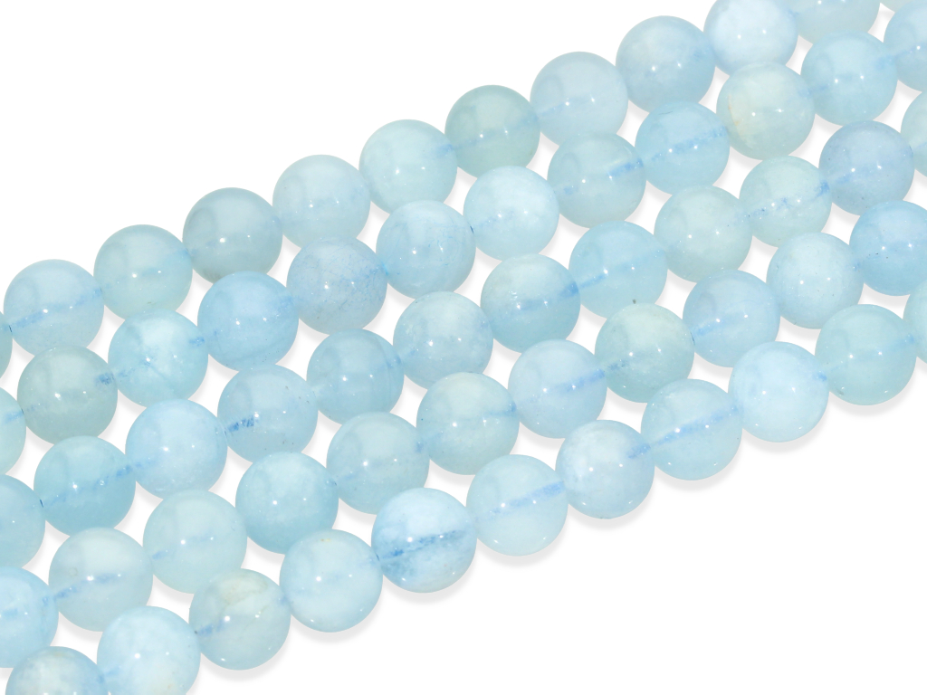 Akwamaryn w kształcie kulki, sprzedawany w sznurach bez zapięcia, służących do samodzielnego tworzenia biżuterii. Cena dotyczy jednego sznura, który podczas kompletowania zamówienia jest wybierany losowo.