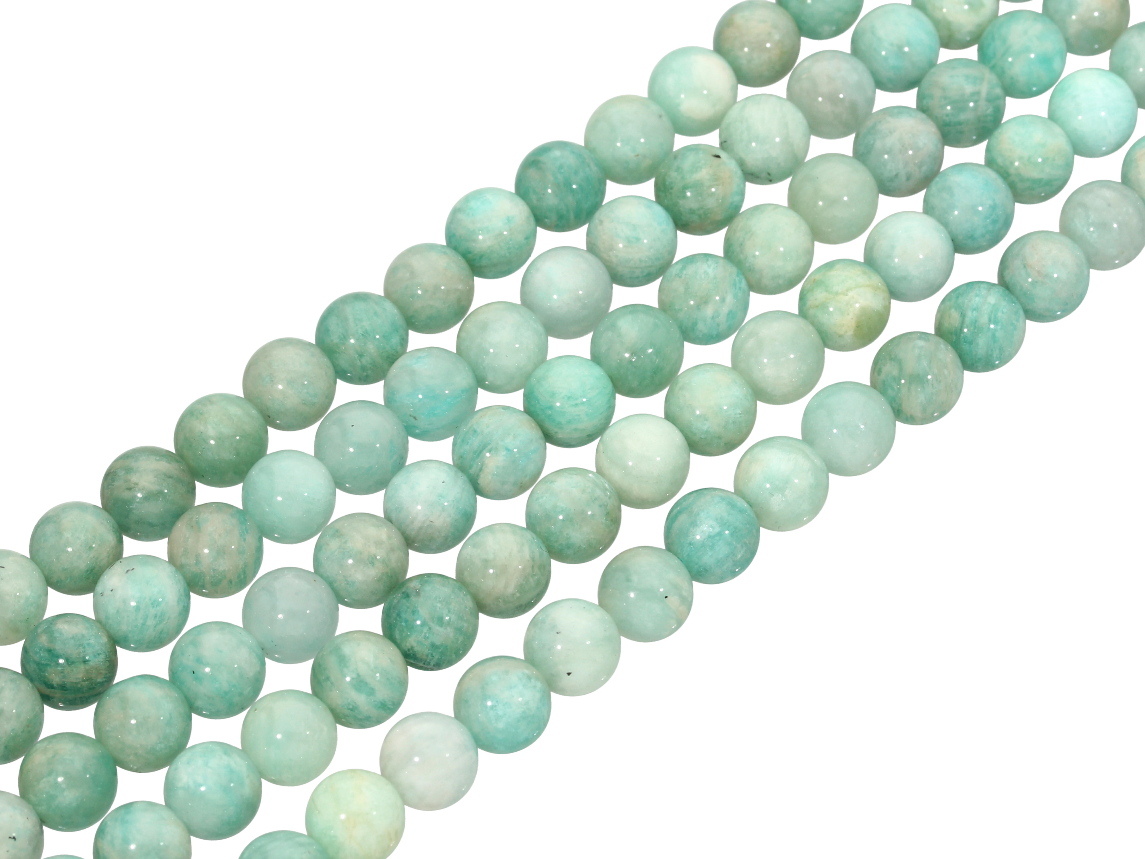 Amazonit w kształcie kulki, sprzedawany w sznurach bez zapięcia, służących do samodzielnego tworzenia biżuterii. Cena dotyczy jednego sznura, który podczas kompletowania zamówienia jest wybierany losowo.