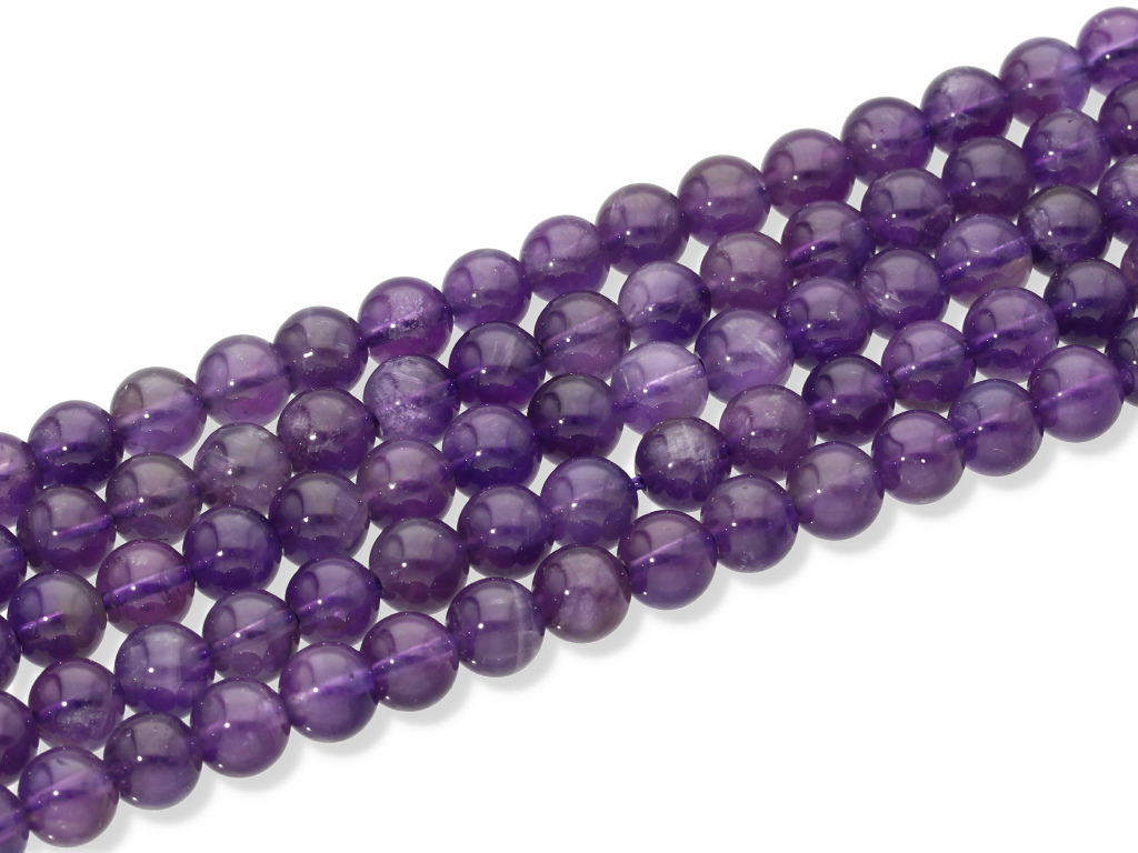 Ametyst gradacji jakościowej B w kształcie kulki, sprzedawany w sznurach bez zapięcia, służących do samodzielnego tworzenia biżuterii. Cena dotyczy jednego sznura, który podczas kompletowania zamówienia jest wybierany losowo.