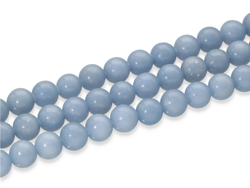 Angelit w kształcie kulki, sprzedawany w sznurach bez zapięcia, służących do samodzielnego tworzenia biżuterii. Cena dotyczy jednego sznura, który podczas kompletowania zamówienia jest wybierany losowo.