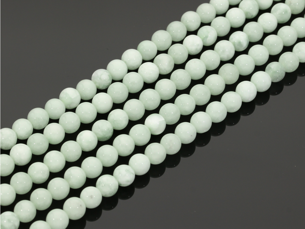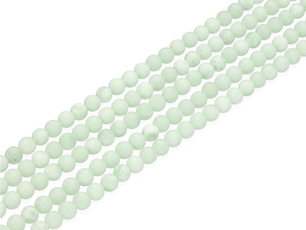 Zielony angelit w kształcie kulki, sprzedawany w sznurach bez zapięcia, służących do samodzielnego tworzenia biżuterii. Cena dotyczy jednego sznura, który podczas kompletowania zamówienia jest wybierany losowo.