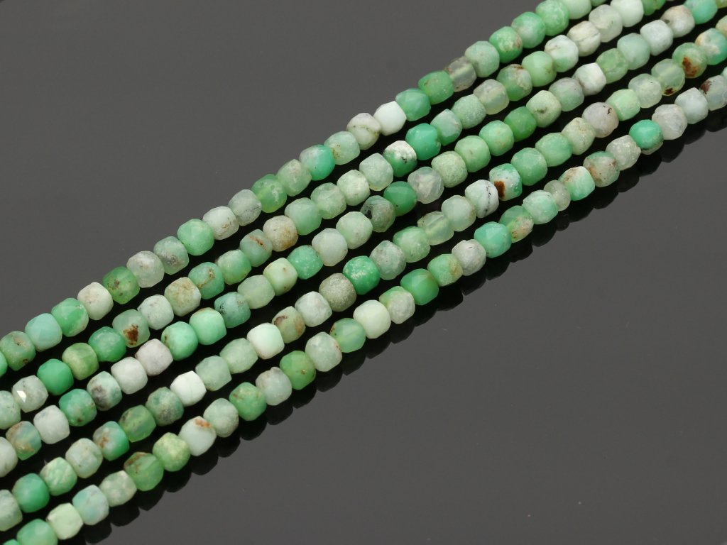 Chryzopraz kostka fasetowana ok.4,3x4,3mm [~39cm]