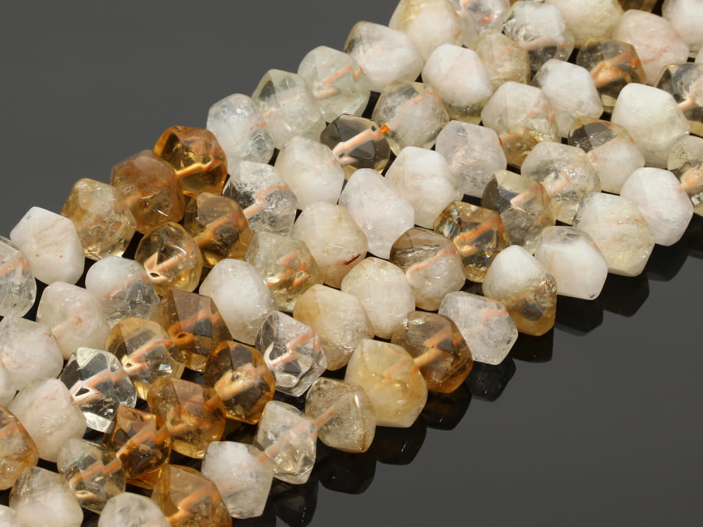 Cytryn w kształcie fasetowanej bryłki, sprzedawany w sznurach bez zapięcia, służących do samodzielnego tworzenia biżuterii. Cena dotyczy jednego sznura, który podczas kompletowania zamówienia jest wybierany losowo.
