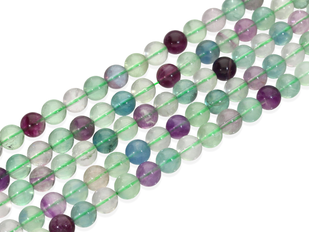 Fluoryt gradacji jakościowej A w kształcie kulki, sprzedawany w sznurach bez zapięcia, służących do samodzielnego tworzenia biżuterii. Cena dotyczy jednego sznura, który podczas kompletowania zamówienia jest wybierany losowo.