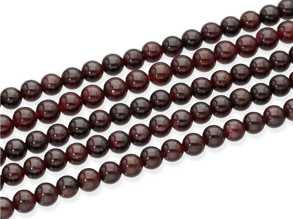 Granat w gradacji B w kształcie kulki, sprzedawany w sznurach bez zapięcia, służących do samodzielnego tworzenia biżuterii. Cena dotyczy jednego sznura, który podczas kompletowania zamówienia jest wybierany losowo.