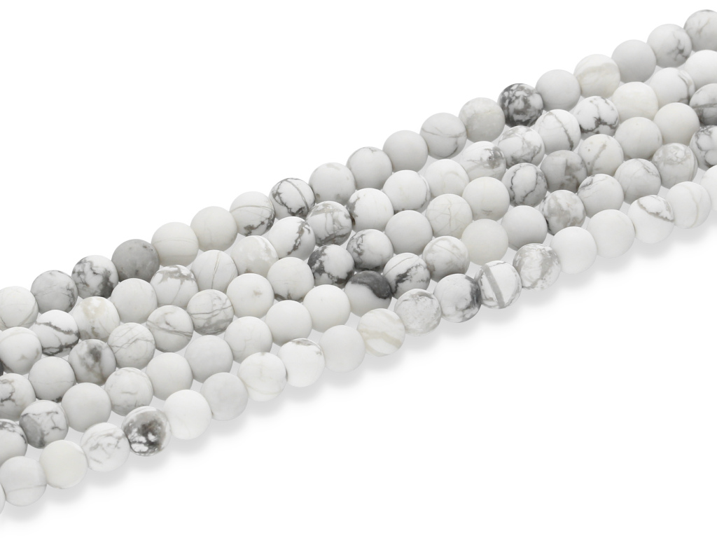 Howlit w kształcie kulki, sprzedawany w sznurach bez zapięcia, służących do samodzielnego tworzenia biżuterii. Cena dotyczy jednego sznura, który podczas kompletowania zamówienia jest wybierany losowo.