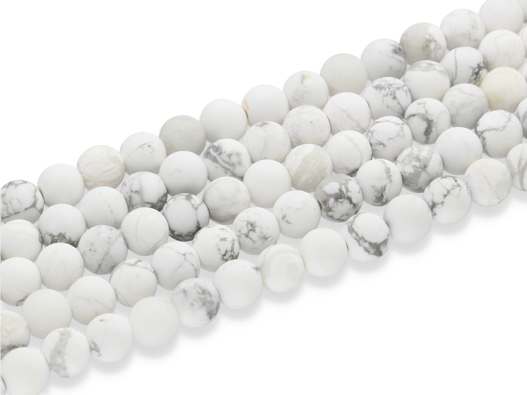 Howlit w kształcie kulki, sprzedawany w sznurach bez zapięcia, służących do samodzielnego tworzenia biżuterii. Cena dotyczy jednego sznura, który podczas kompletowania zamówienia jest wybierany losowo.