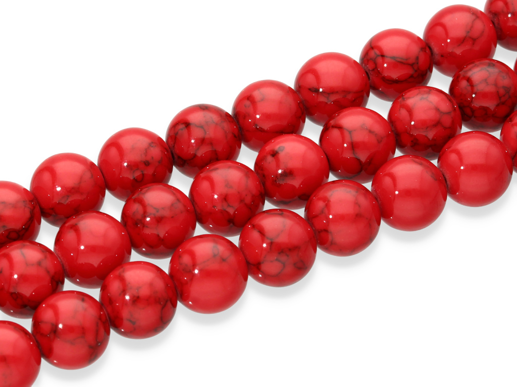 Howlit syntetyczny w kształcie kulki, sprzedawany w sznurach bez zapięcia, służących do samodzielnego tworzenia biżuterii. Cena dotyczy jednego sznura, który podczas kompletowania zamówienia jest wybierany losowo.