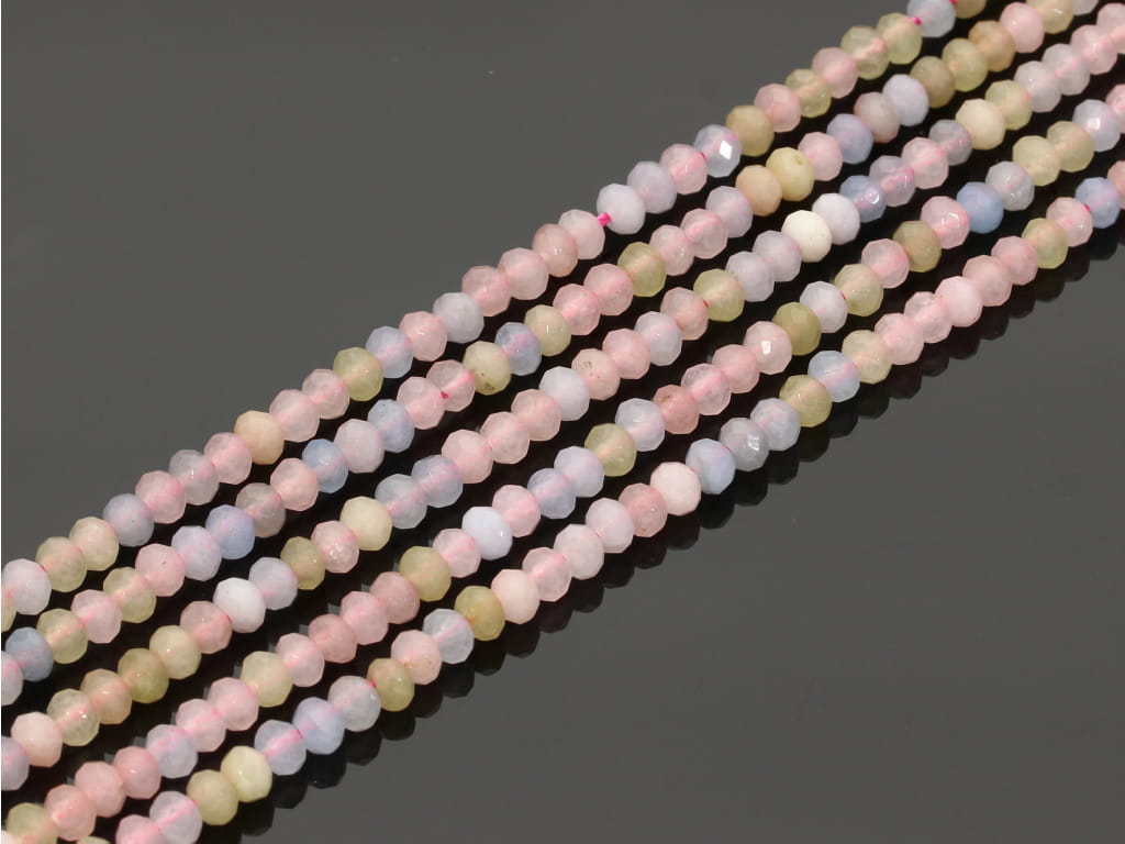 Jadeit w kształcie fasetowanej oponki, sprzedawany w sznurach bez zapięcia, służących do samodzielnego tworzenia biżuterii. Cena dotyczy jednego sznura, który podczas kompletowania zamówienia jest wybierany losowo.