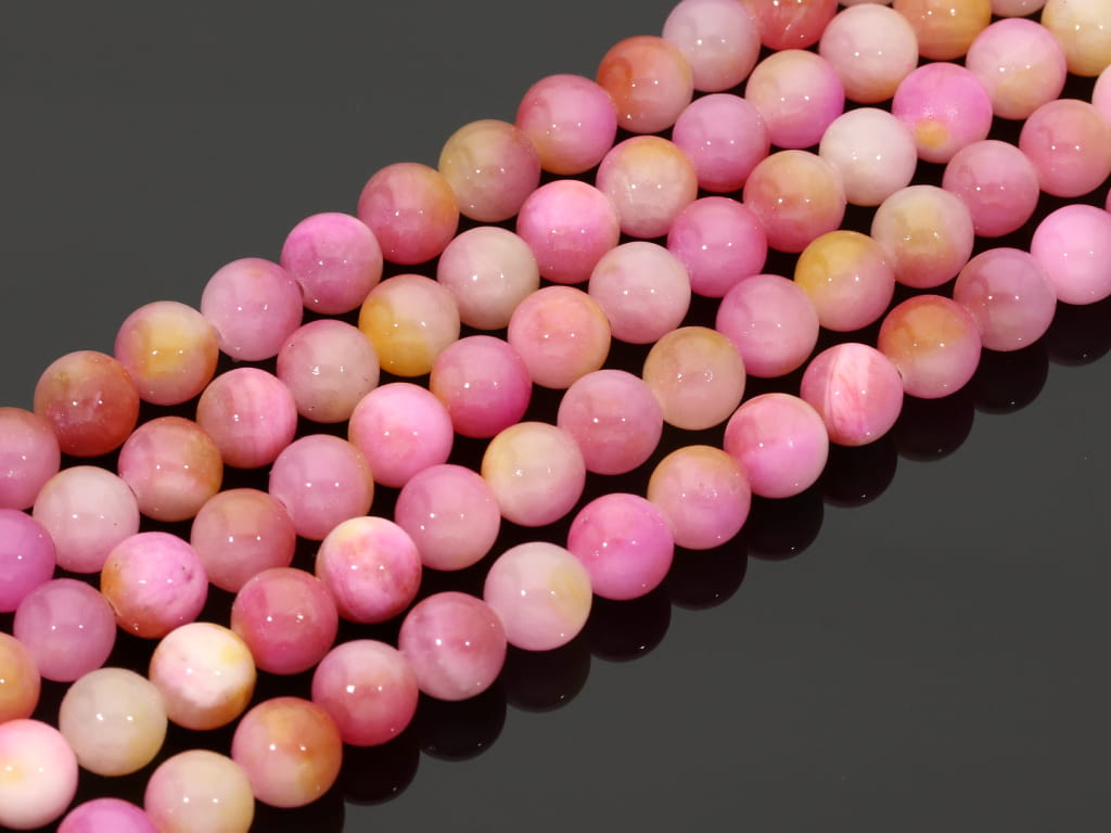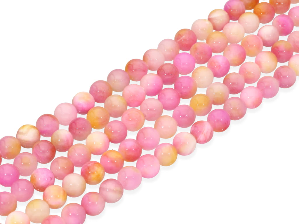 Jadeit "persja" w kształcie kulki, sprzedawany w sznurach bez zapięcia, służących do samodzielnego tworzenia biżuterii. Cena dotyczy jednego sznura, który podczas kompletowania zamówienia jest wybierany losowo.