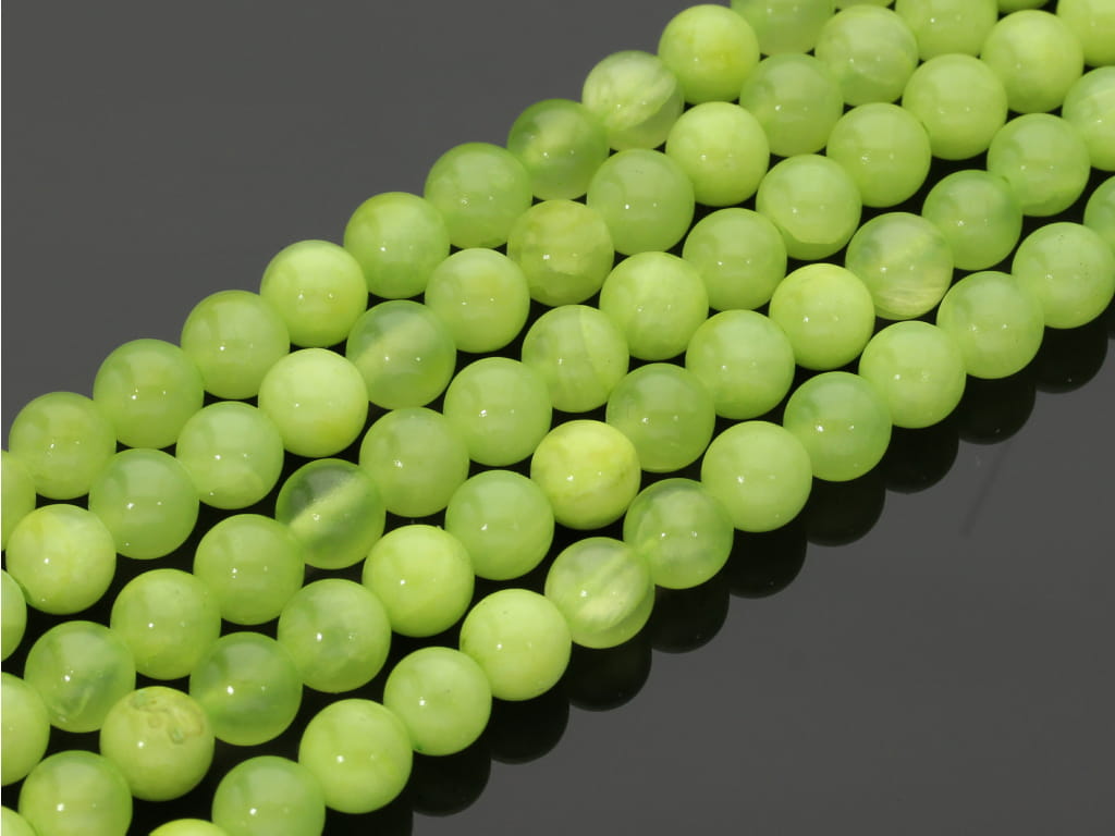 Jadeit w kształcie kulki, sprzedawany w sznurach bez zapięcia, służących do samodzielnego tworzenia biżuterii. Cena dotyczy jednego sznura, który podczas kompletowania zamówienia jest wybierany losowo.