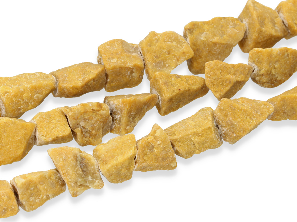 Jaspis w kształcie surowej bryłki, sprzedawany w sznurach bez zapięcia, służących do samodzielnego tworzenia biżuterii. Cena dotyczy jednego sznura o długości ~ 19 cm, który podczas kompletowania zamówienia jest wybierany losowo.