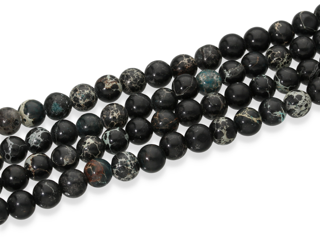 Jaspis w kształcie kulki, sprzedawany w sznurach bez zapięcia, służących do samodzielnego tworzenia biżuterii. Cena dotyczy jednego sznura o długości ~ 19 cm, który podczas kompletowania zamówienia jest wybierany losowo.