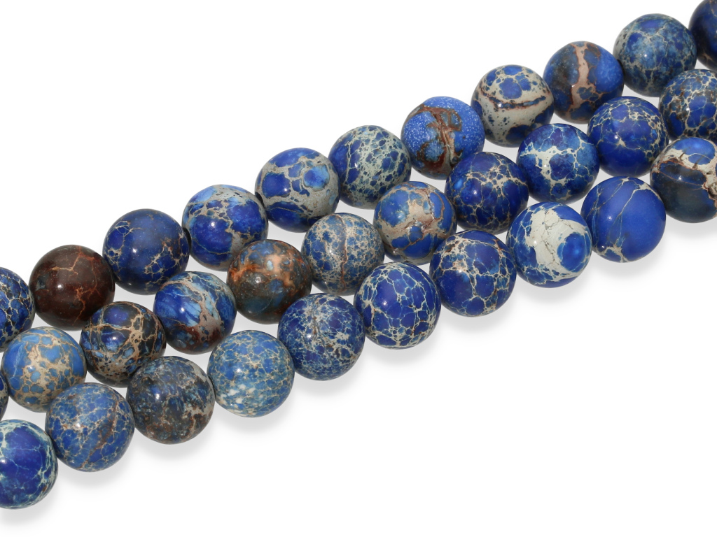 Jaspis w kształcie kulki, sprzedawany w sznurach bez zapięcia, służących do samodzielnego tworzenia biżuterii. Cena dotyczy jednego sznura o długości ~ 18 cm, który podczas kompletowania zamówienia jest wybierany losowo.