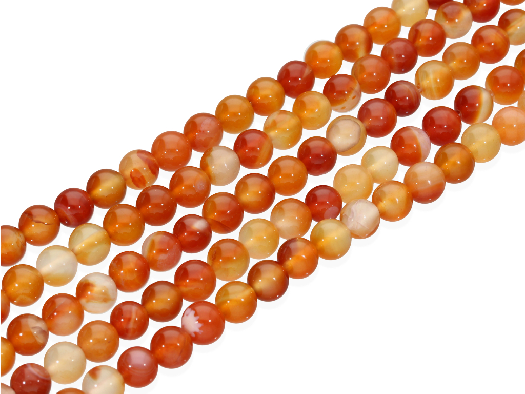 Karneol w kształcie kulki, sprzedawany w sznurach bez zapięcia, służących do samodzielnego tworzenia biżuterii. Cena dotyczy jednego sznura, który podczas kompletowania zamówienia jest wybierany losowo.