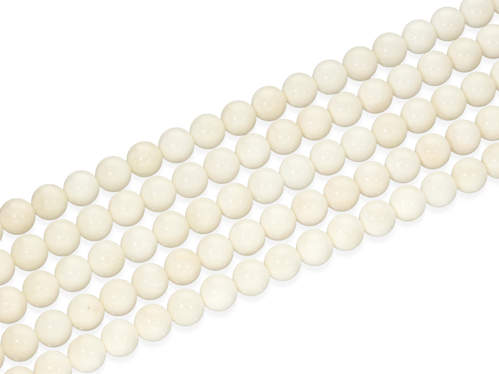Koral biały w kształcie kulki, sprzedawany w sznurach bez zapięcia, służących do samodzielnego tworzenia biżuterii. Cena dotyczy jednego sznura o długości ~ 20 cm, który podczas kompletowania zamówienia jest wybierany losowo.