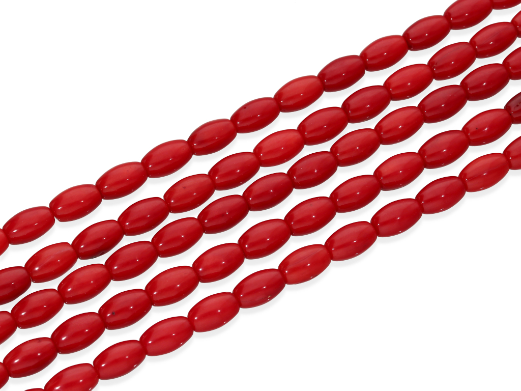 Koral czerwony w kształcie oliwki, sprzedawany w sznurach bez zapięcia, służących do samodzielnego tworzenia biżuterii. Cena dotyczy jednego sznura o długości ~ 18 cm, który podczas kompletowania zamówienia jest wybierany losowo.