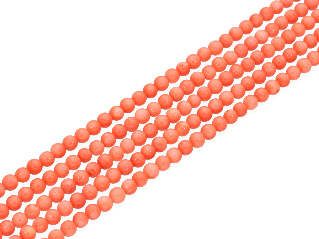 Koral w kształcie kulki, sprzedawany w sznurach bez zapięcia, służących do samodzielnego tworzenia biżuterii. Cena dotyczy jednego sznura, który podczas kompletowania zamówienia jest wybierany losowo.