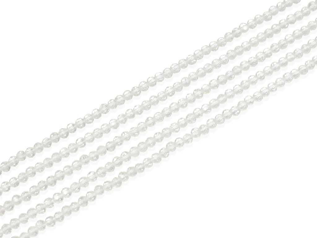 Kryształ górski w kształcie fasetowanej kulki, sprzedawany w sznurach bez zapięcia, służących do samodzielnego tworzenia biżuterii. Cena dotyczy jednego sznura, który podczas kompletowania zamówienia jest wybierany losowo.