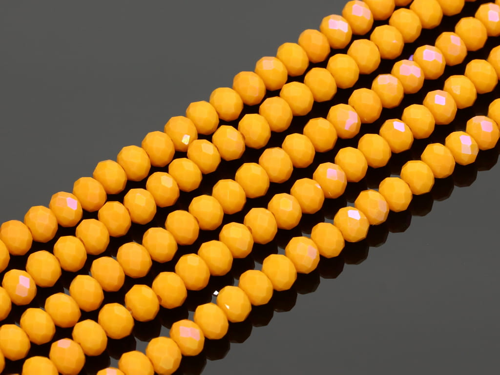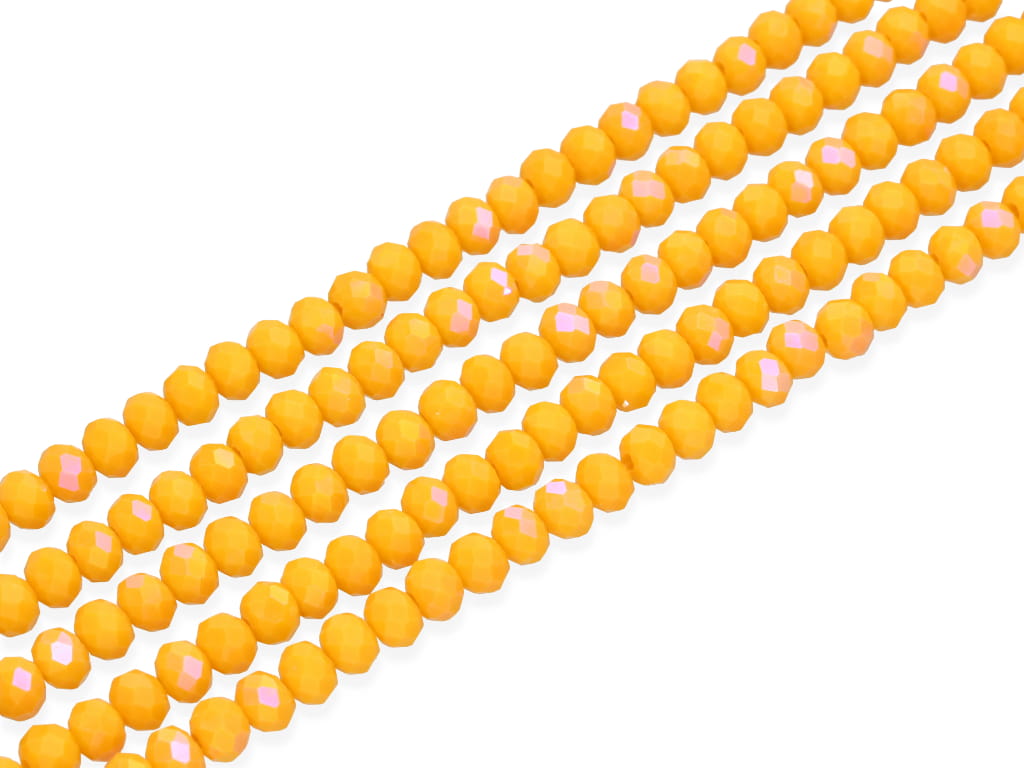 Szkło kryształowe w kształcie fasetowanej oponki, sprzedawane w sznurach bez zapięcia, służących do samodzielnego tworzenia biżuterii. Cena dotyczy jednego sznura, który podczas kompletowania zamówienia jest wybierany losowo.