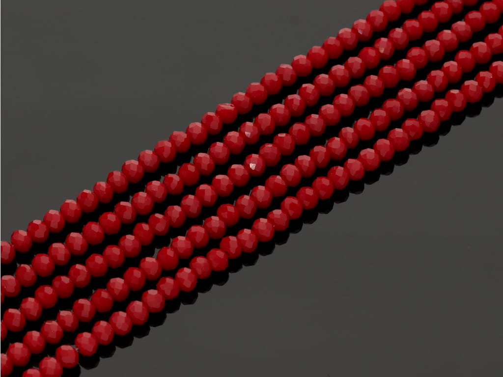 Szkło kryształowe w kształcie fasetowanej oponki, sprzedawane w sznurach bez zapięcia, służących do samodzielnego tworzenia biżuterii. Cena dotyczy jednego sznura, który podczas kompletowania zamówienia jest wybierany losowo.