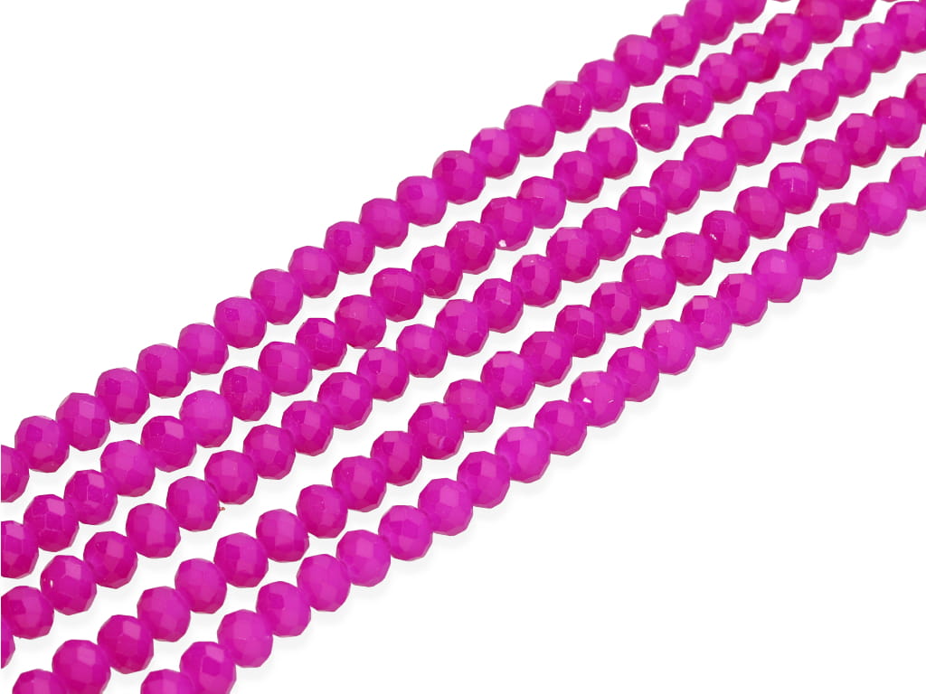 Szkło kryształowe w kształcie fasetowanej oponki, sprzedawane w sznurach bez zapięcia, służących do samodzielnego tworzenia biżuterii. Cena dotyczy jednego sznura, który podczas kompletowania zamówienia jest wybierany losowo.