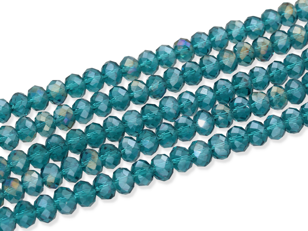 Szkło kryształowe w kształcie oponki fasetowanej, sprzedawane w sznurach bez zapięcia, służących do samodzielnego tworzenia biżuterii. Cena dotyczy jednego sznura o długości ~ 18 cm, który podczas kompletowania zamówienia jest wybierany losowo.