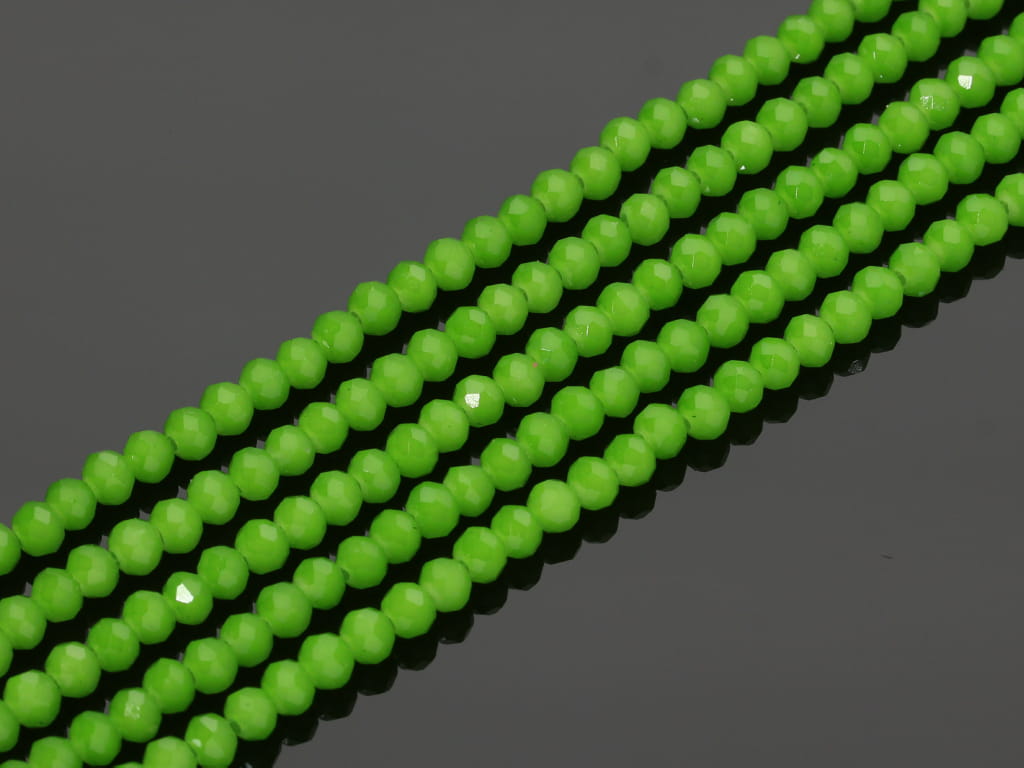Szkło kryształowe w kształcie fasetowanej oponki, sprzedawane w sznurach bez zapięcia, służących do samodzielnego tworzenia biżuterii. Cena dotyczy jednego sznura, który podczas kompletowania zamówienia jest wybierany losowo.
