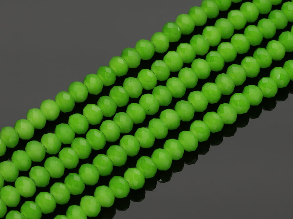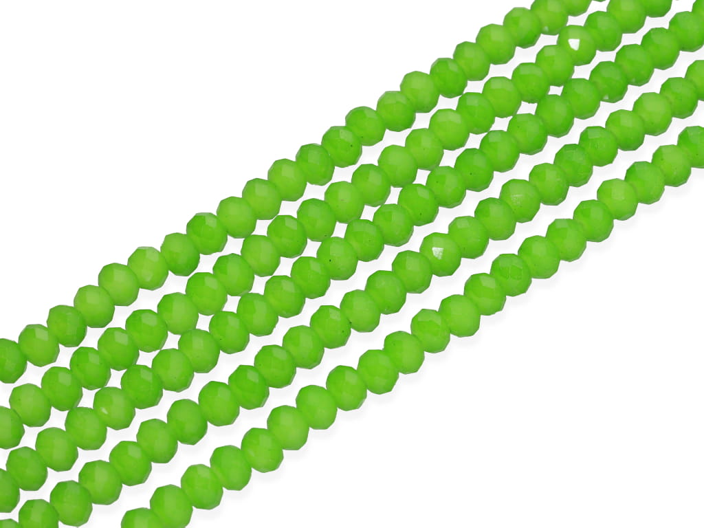 Szkło kryształowe w kształcie fasetowanej oponki, sprzedawane w sznurach bez zapięcia, służących do samodzielnego tworzenia biżuterii. Cena dotyczy jednego sznura, który podczas kompletowania zamówienia jest wybierany losowo.
