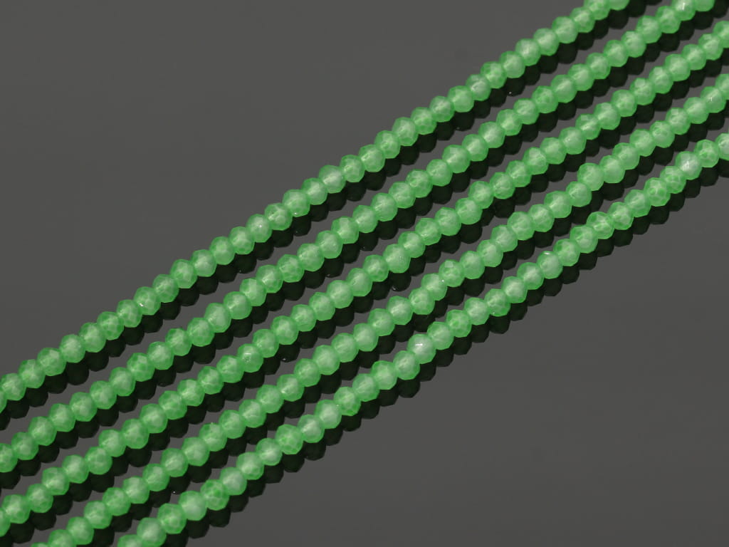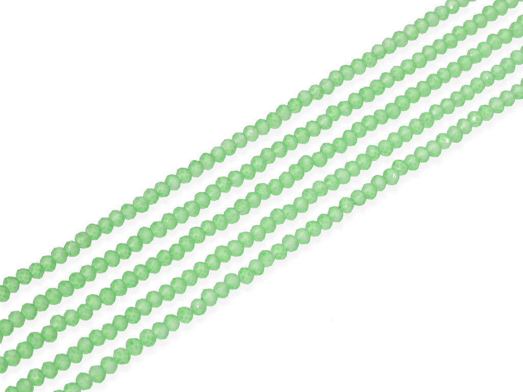 Szkło kryształowe w kształcie fasetowanej oponki, sprzedawane w sznurach bez zapięcia, służących do samodzielnego tworzenia biżuterii. Cena dotyczy jednego sznura, który podczas kompletowania zamówienia jest wybierany losowo.