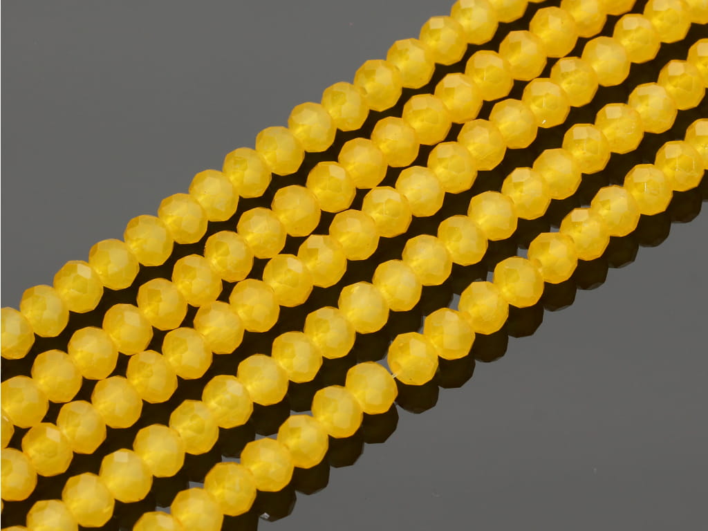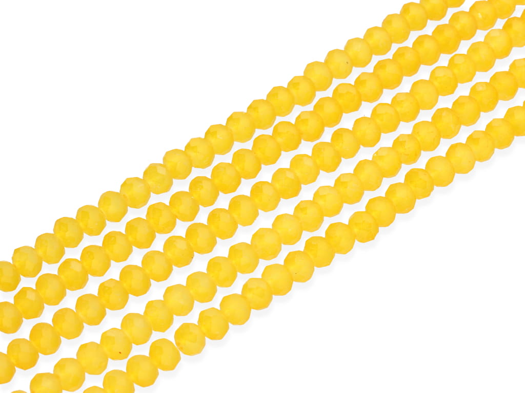 Szkło kryształowe w kształcie fasetowanej oponki, sprzedawane w sznurach bez zapięcia, służących do samodzielnego tworzenia biżuterii. Cena dotyczy jednego sznura, który podczas kompletowania zamówienia jest wybierany losowo.