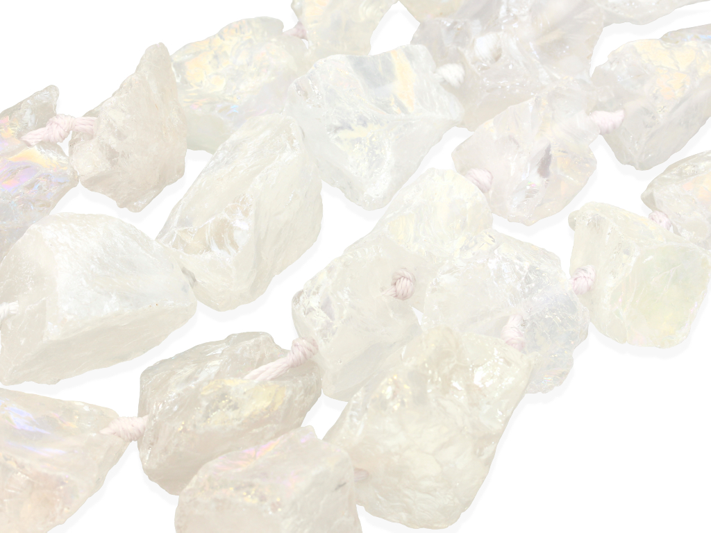 Kwarc w kształcie nieregularnej bryłki, sprzedawany w sznurach bez zapięcia, służących do samodzielnego tworzenia biżuterii. Cena dotyczy jednego sznura, który podczas kompletowania zamówienia jest wybierany losowo.