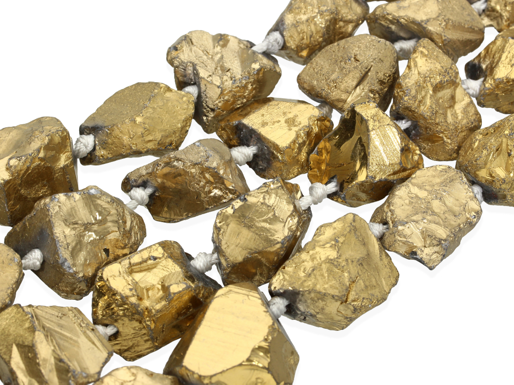 Kwarc w kształcie nieregularnej bryłki, sprzedawany w sznurach bez zapięcia, służących do samodzielnego tworzenia biżuterii. Cena dotyczy jednego sznura, który podczas kompletowania zamówienia jest wybierany losowo.