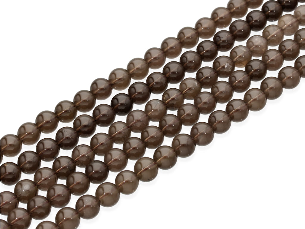 Kwarc dymny w kształcie kulki, sprzedawany w sznurach bez zapięcia, służących do samodzielnego tworzenia biżuterii. Cena dotyczy jednego sznura, który podczas kompletowania zamówienia jest wybierany losowo.
