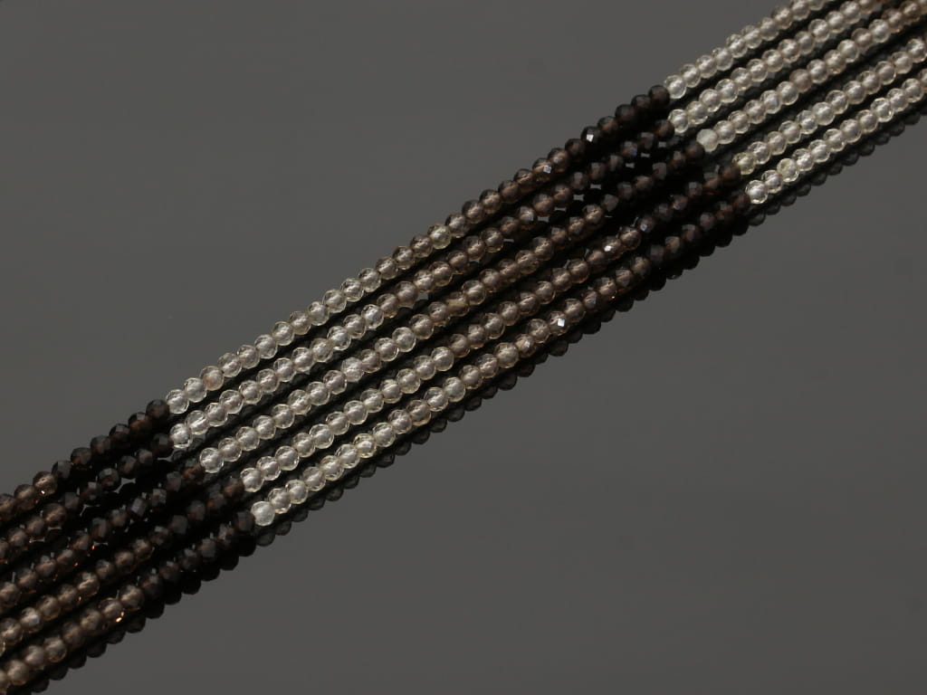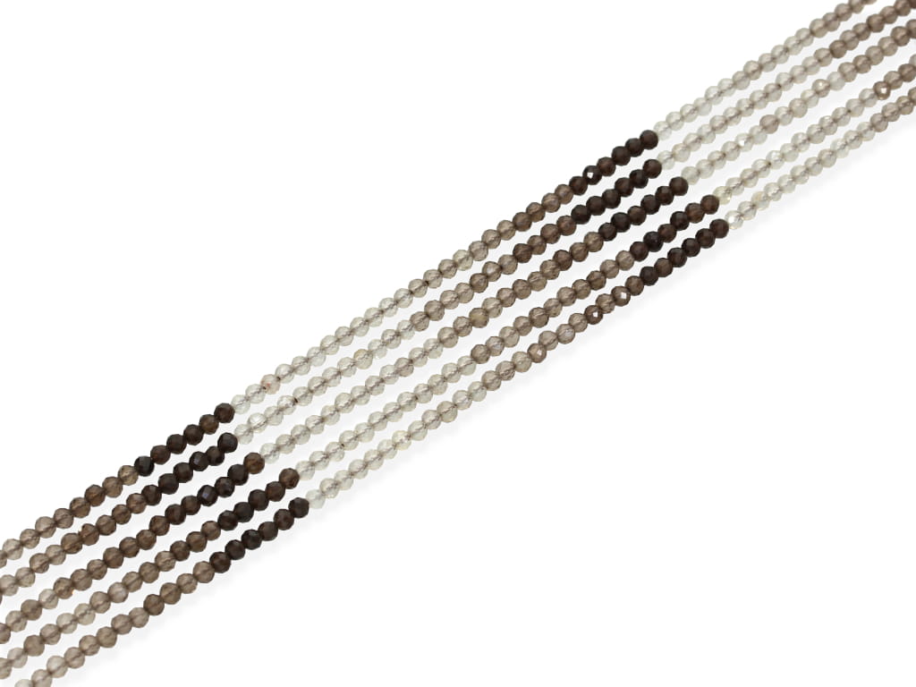 Kwarc dymny w kształcie fasetowanej kulki, sprzedawany w sznurach bez zapięcia, służących do samodzielnego tworzenia biżuterii. Cena dotyczy jednego sznura, który podczas kompletowania zamówienia jest wybierany losowo.