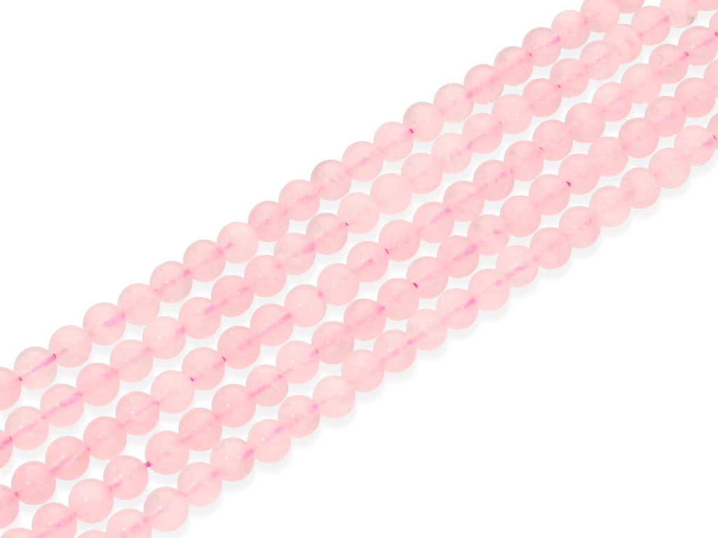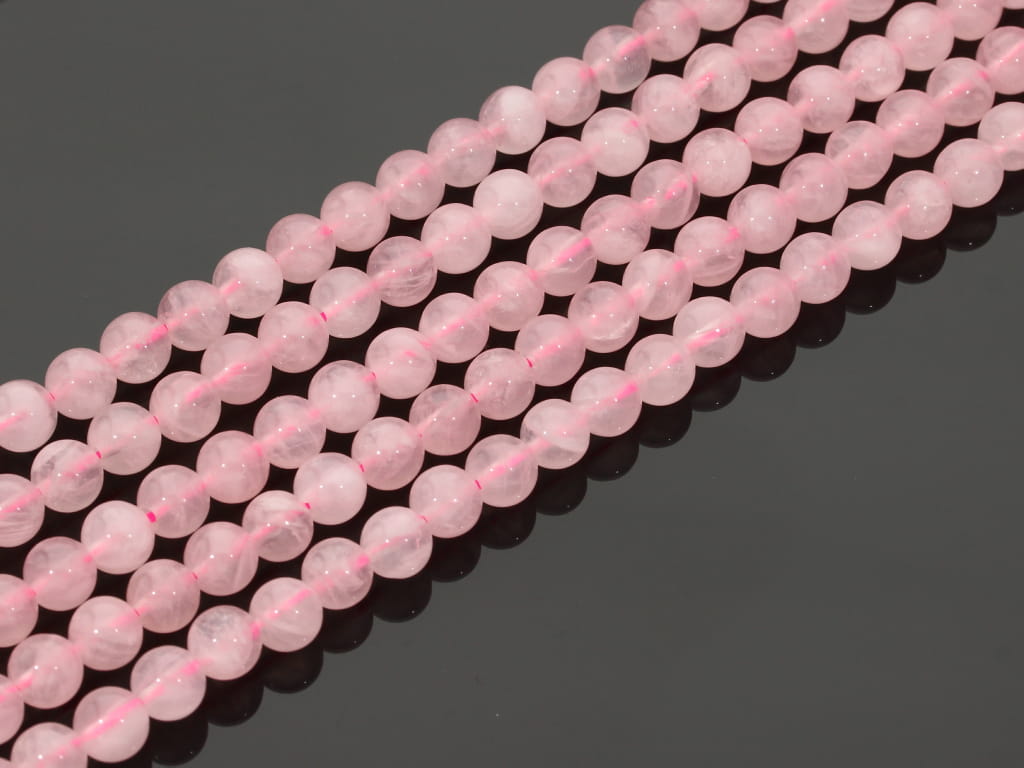 Kwarc różowy gradacji jakościowej A w kształcie kulki, sprzedawany w sznurach bez zapięcia, służących do samodzielnego tworzenia biżuterii. Cena dotyczy jednego sznura, który podczas kompletowania zamówienia jest wybierany losowo.