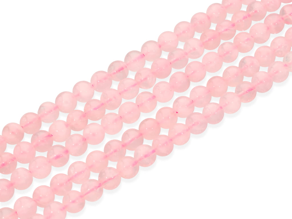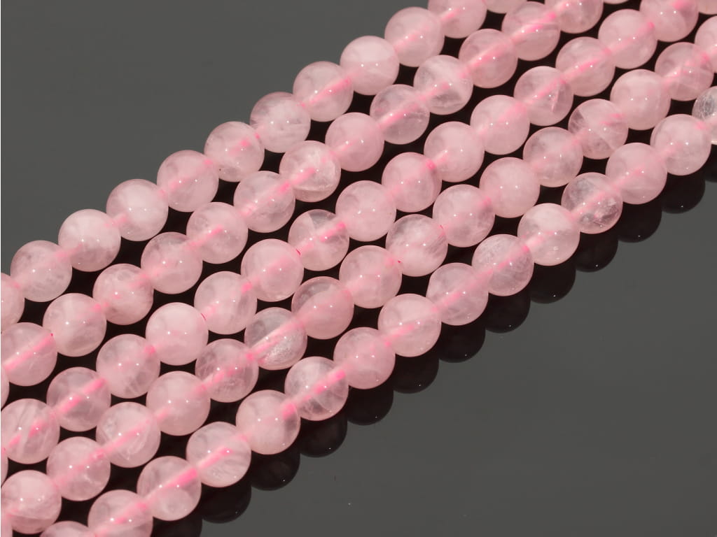 Kwarc różowy gradacji jakościowej A w kształcie kulki, sprzedawany w sznurach bez zapięcia, służących do samodzielnego tworzenia biżuterii. Cena dotyczy jednego sznura, który podczas kompletowania zamówienia jest wybierany losowo.