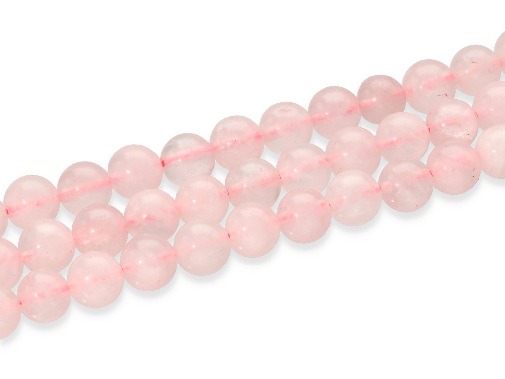 Kwarc różowy w kształcie kulki, sprzedawany w sznurach bez zapięcia, służących do samodzielnego tworzenia biżuterii. Cena dotyczy jednego sznura, który podczas kompletowania zamówienia jest wybierany losowo.