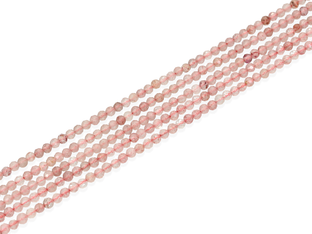 Kwarc truskawkowy kulka fasetowana ok.3mm [~19cm]