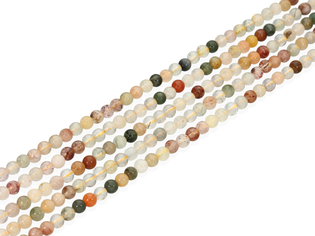 Kwarc z rutylem w kształcie kulki, sprzedawany w sznurach bez zapięcia, służących do samodzielnego tworzenia biżuterii. Cena dotyczy jednego sznura, który podczas kompletowania zamówienia jest wybierany losowo.