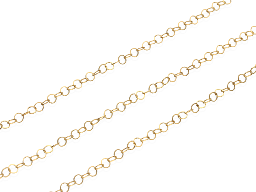 Stalowy łańcuszek "rolo" posiadający lutowane ogniwa. Przy zakupie kilku opakowań, łańcuszek wysyłamy w jednym odcinku.