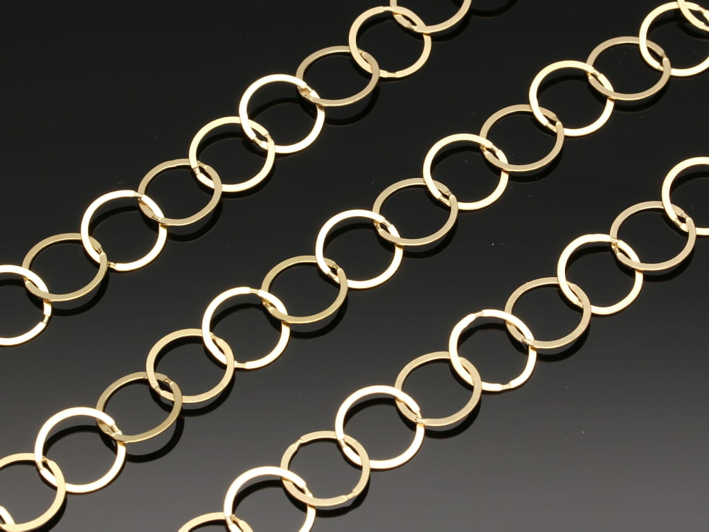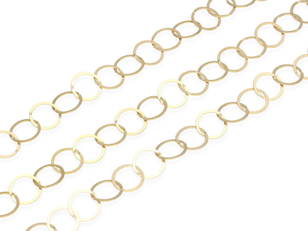 Łańcuszek "rolo spłaszczone" zawierający lutowane ogniwa. Przy zakupie kilku opakowań, łańcuszek wysyłamy w jednym odcinku.